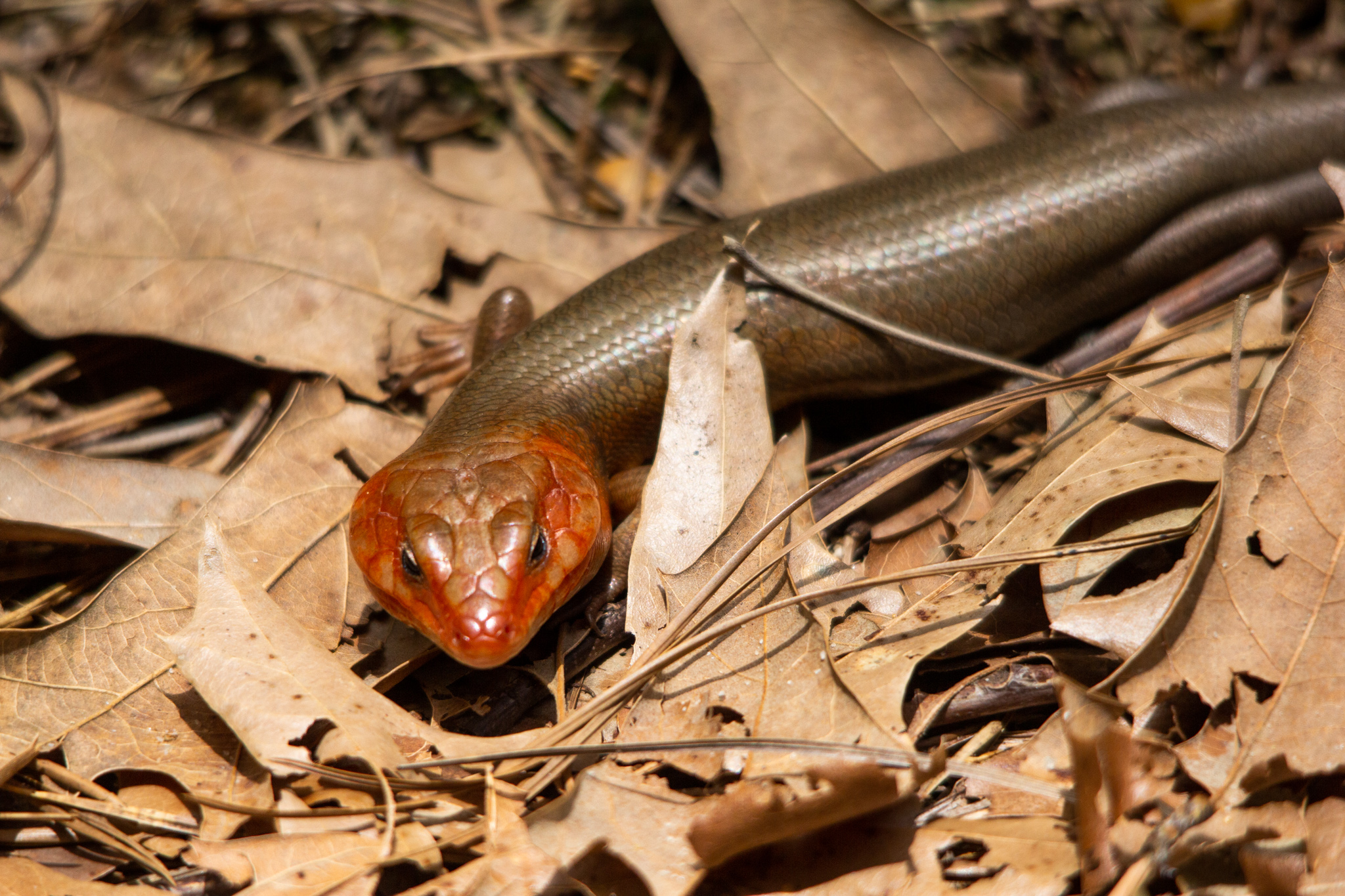 A few days later I saw it again in the same spot. It hurried off but I could tell it was a lizard this time. After walking past the hole a few times it seemed to be less afraid of me and would just sit really still when I walked past it. I few days later I saw it again in the same spot. I decided I would go get my camera from the truck and try to get a picture since I had a little more time on my lunch break. I came by the spot and it was gone. I walked by again on my way back to the office and it came back out and this time was in a better spot than usual. I snapped a few pictures of it and finally took a moment to look at them today. Looking it up I think it’s called a Broad Headed Skink.