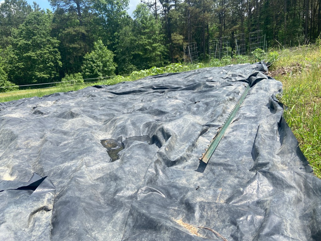 I just realized that I posted about my silage tarp last week but failed to put a picture of what I was talking about. Below is a picture of it on the plot I’m planning to use for a fall garden later