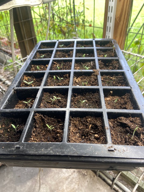I planted a tray of Black Zebra Cherry Tomatoes for some late season tomatoes. These seeds are of from Hoss Tools. They’re coming up now and nearly all cells in my 24 cell seed starting tray is coming up. This tray is part of the 48 Cell Seed Starting Kit from Hoss Tools. I really like these trays! The 24 cells is really almost too much for my garden on tomatoes but it’s nice to have extra plants to give to friends and with many seed packs coming with 50 seeds it’s the perfect size for planting two seeds per tray. I’ll probably plant these plants in my Grow Boxes I’ve mentioned before. The plants I have in those are about done.