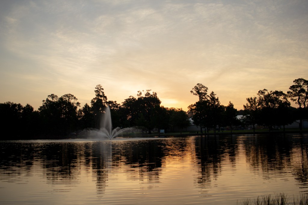 I’ve mentioned a lot about habits here in my ramblings. One of the habits I’m trying to keep at the top of my list is walking 10,000 steps per day. I use the step counter on my iPhone to keep track of my steps. Since it has gotten so hot I try to get some steps in the morning before it gets too hot. Most mornings I walk by my office but sometimes I go out to The University of Arkansas at Monticello (UAM) and walk around the pond. The other morning was beautiful out there as the sun was rising. I had a hard time focusing on the walk as I really just wanted to watch the sunrise and take pictures (and fish)!