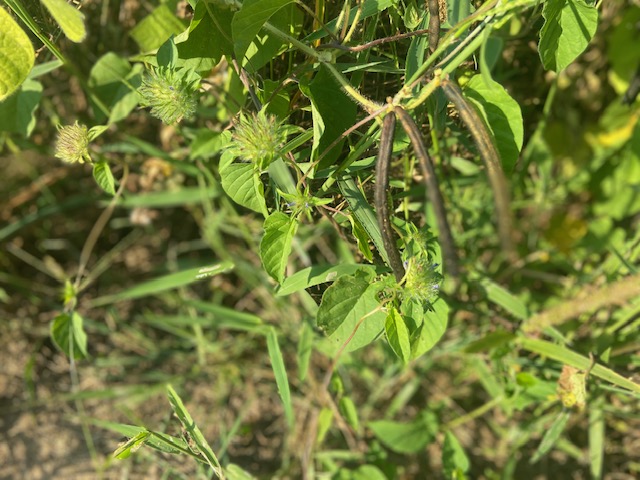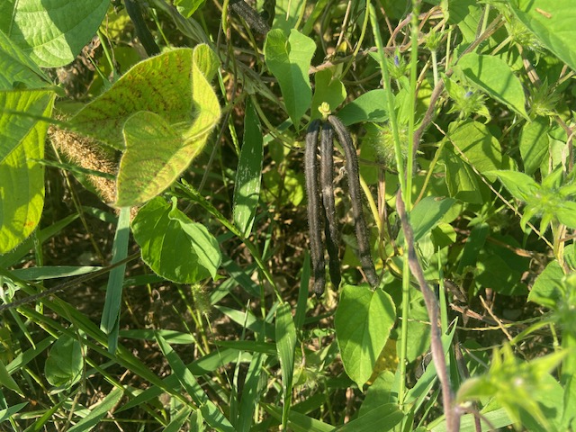 For today’s garden update I was planning a new project but with the heat wave we are in right now I’ve decided to wait. Since there’s not much going on in my garden right now I decided another look at my pollinator garden was good. I like this patch because there seems to always be something going on in it. I noticed some beans really doing good out there this time. In the listing for this seed mix from Green Cover Seed are two beans, Black Beans and Mung Beans. These resemble some picture I’ve found of Mung Beans but since they are black I guess it could be the black beans. You’ll notice in the picture with the sunflower the taller plants growing. These are called Sunn Hemp. I’ve grown this before as a cover crop, it should be blooming shortly.
