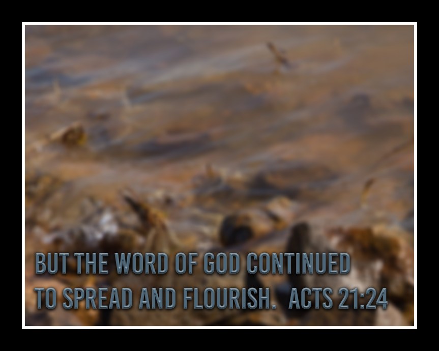 A couple of weeks ago the bible study group I am apart of read Acts 12. A verse that really hit me in this study was: But the word of God continued to spread and flourish. -Acts 12:24. In life when I get the most frustrated then here comes the word of God, speaking into the moment just as I need it. It may be a message from a pastor, a comment from a friend, a line in a song, or just some random moment. I do not know why I allow myself to be discouraged. Has it ever happened to you? Let me encourage to read Acts 12.