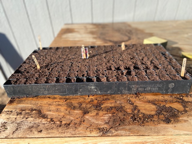 Well gardening time is almost here for 2024. A favorite part for me is starting seeds. One it gives me an excuse in my least favorite time of year (February ) to do a project. Two it allows me to grow plants you cannot typically find already started. I’ve said it before, if not for my love of a eating a fresh tomato I do not know that I’d go the the trouble of gardening! The tray pictured below has four varieties of tomatoes started in a 162 cell tray I bought from Hoss Tools. I’ve started these varieties: