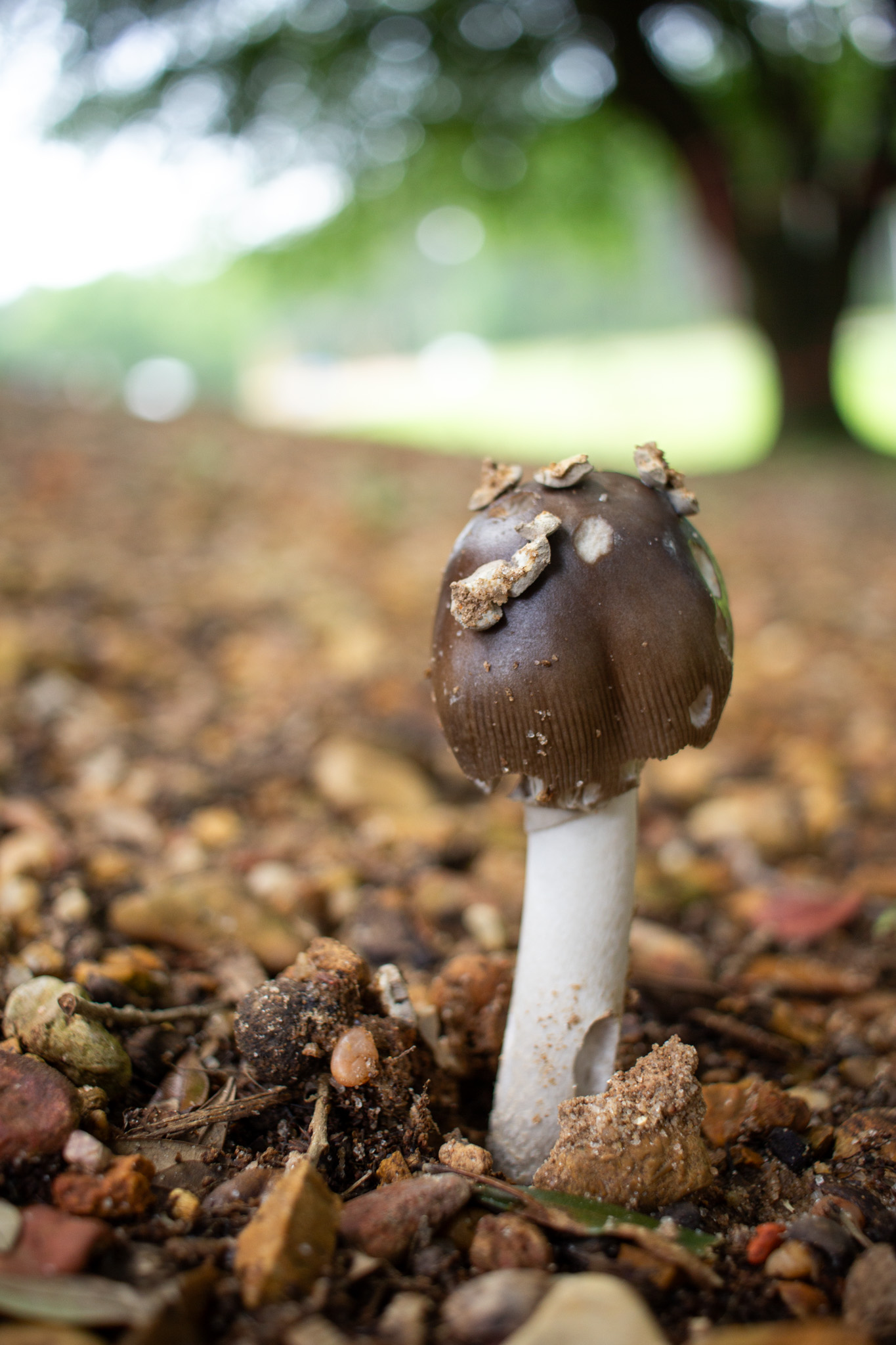 The opportunity for a mushroom photograph hit me more recently. I was walking around my yard and as usual was in a rush trying to get yard work done. I looked down and a mushroom on the path next to my house caught my eye. I went and got my camera from my truck and returned to take a photograph even though I was in my usual hurry. When I came back I could not find the mushroom at first. After wandering around a few minutes looking down I finally found it again. You see, if not because of the loose gravel along this path around my house and because I stumble a bit I usually would not walk slow enough looking down and catch the sight of a simple mushroom.