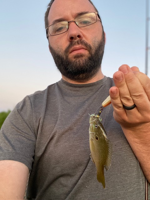 I mentioned last week about going at to Lake Monticello to take photographs and hoping to get a sunrise photo but the weather did not allow it. I wished while I was there to have a fishing pole so I went back a couple days later before work and did a little fishing from the bank. I only caught one fish (it was small!) but it was good to be outside fishing for a little while. I’ll have to put this on my list of things to do again!