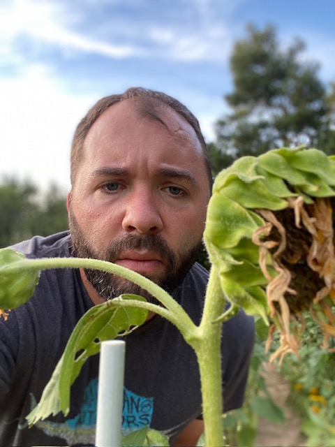 The Sunflower I thought would be my tallest is a Skyscraper variety from Hoss Tools. For whatever reason it did do as well as I hoped. I have some other Skyscrapers that are doing better. A few weeks ago we had a storm which blew the plant over so I staked it but it was done growing at the time and has since started to turn brown. I do not have updated pictures of it but it’s done. Hopefully, I’ll have some taller ones soon.