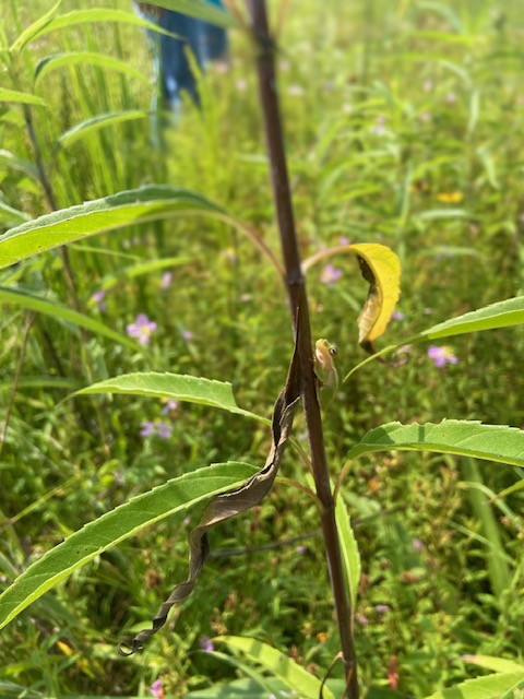 My favorite moment of the trip was this one. I looked down while we were walking in the wild flowers and spotted this small tree frog hanging out on a plant. (It’s not the greatest picture as the wind was blowing and I snapped this photograph with my cell phone) That right there is the benefit of this. Yes, the flowers are beautiful and yes they are beneficial to many pollinators but there is so many more benefits in a planting such as this! Thanks to all who work on projects such as this one.