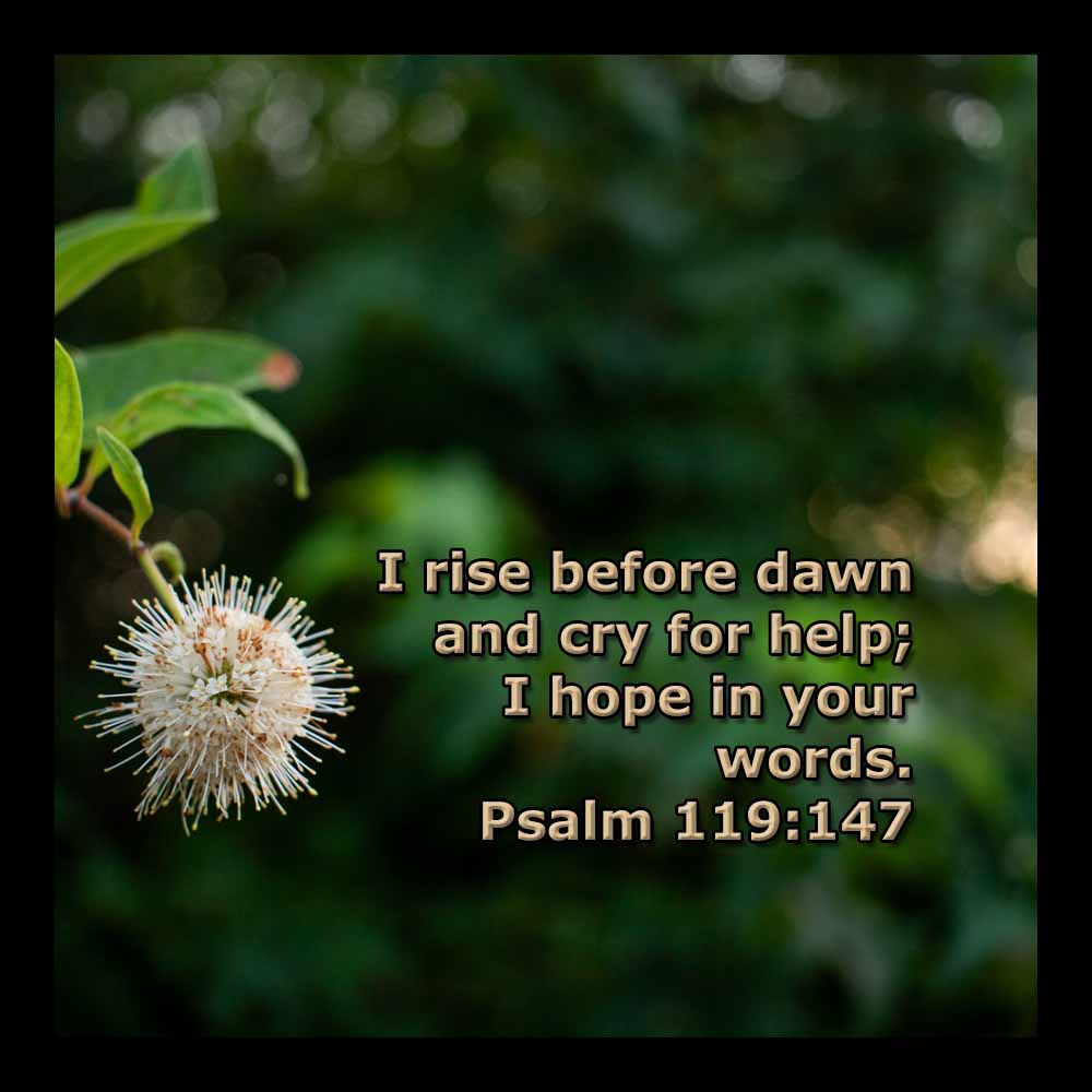 This week’s word of encouragement is Psalm 119:147. Out at Lake Monticello the other morning watching the sunrise I was caught by the beauty of the moment.