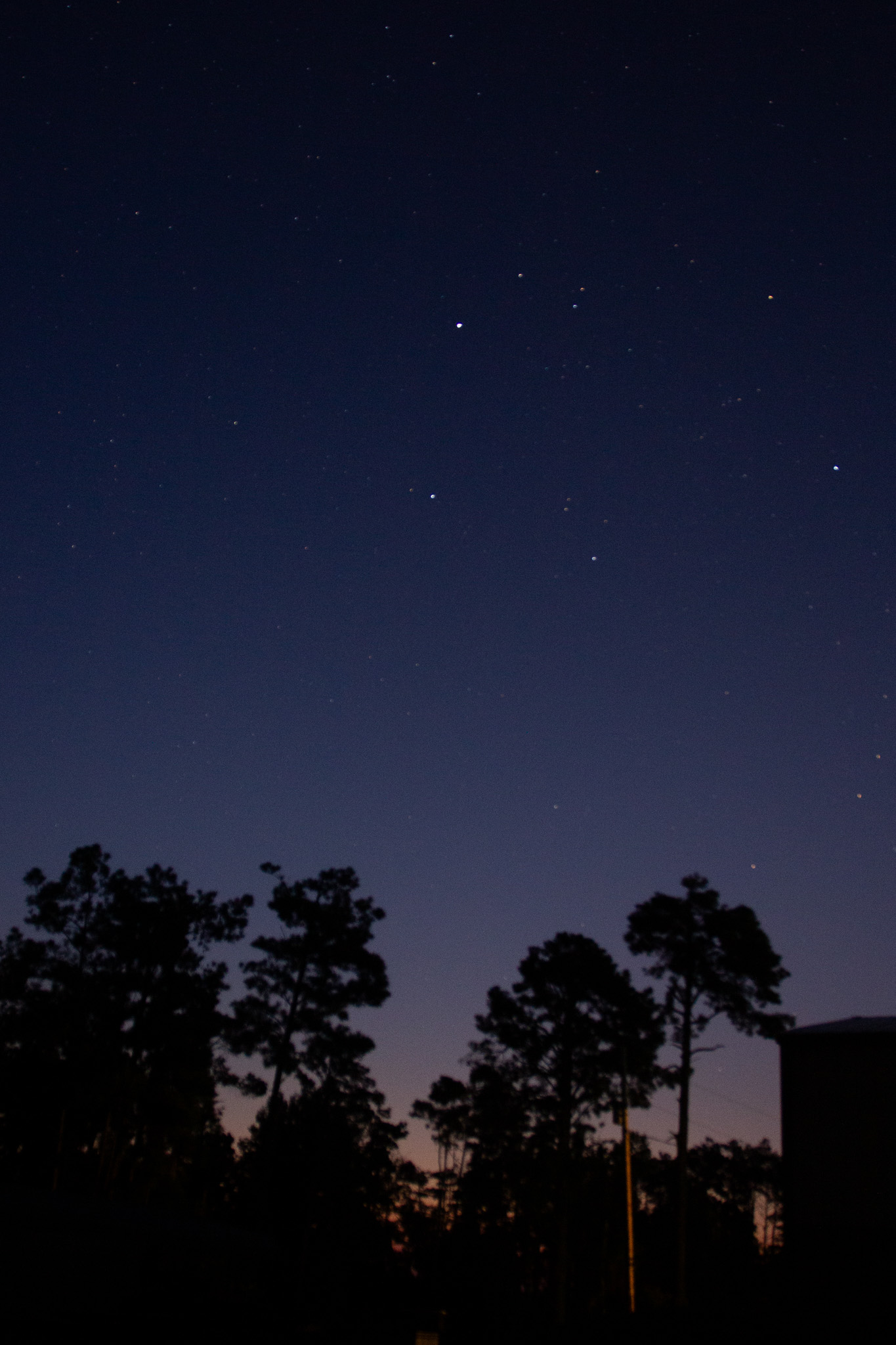 It’s been while since I’ve attempted any kid of night sky photography. The other morning as I was l leaving early to go walk (gotta beat the heat) I spotted a clear view of the stars across my backyard so I grabbed my camera and tripod to get a picture of the stars before the sun arose.
