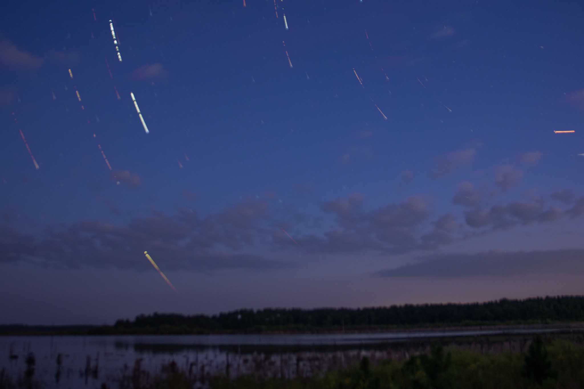 We had some rainy/cloudy weather so it was a few days before I could attempt this again. I went out late one night to setup for a capture. I noticed these “floating stars” at the horizon as I run my camera. They’d drift upward then sort of disappear. I just assumed it was Starlink satellites being launched from the west coast (maybe they are). The photos I’ve seen of Starlink satellites have always been a straight line but after I got back and stacked my images for the star trail I noticed quite a few in a wad on the horizon so I’m really not sure if these are Starlink satellites or some other launches but this capture was over about an hour’s time. If you have any thoughts please send me a message.