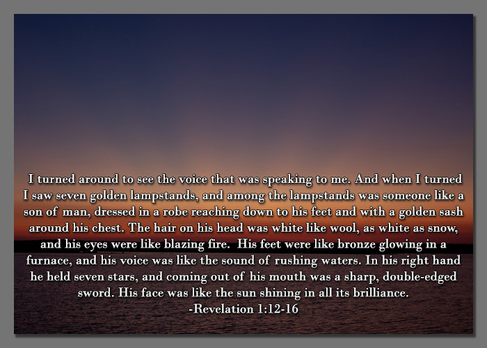 The verse of scripture I’m sharing today: Revelation 1:12-16