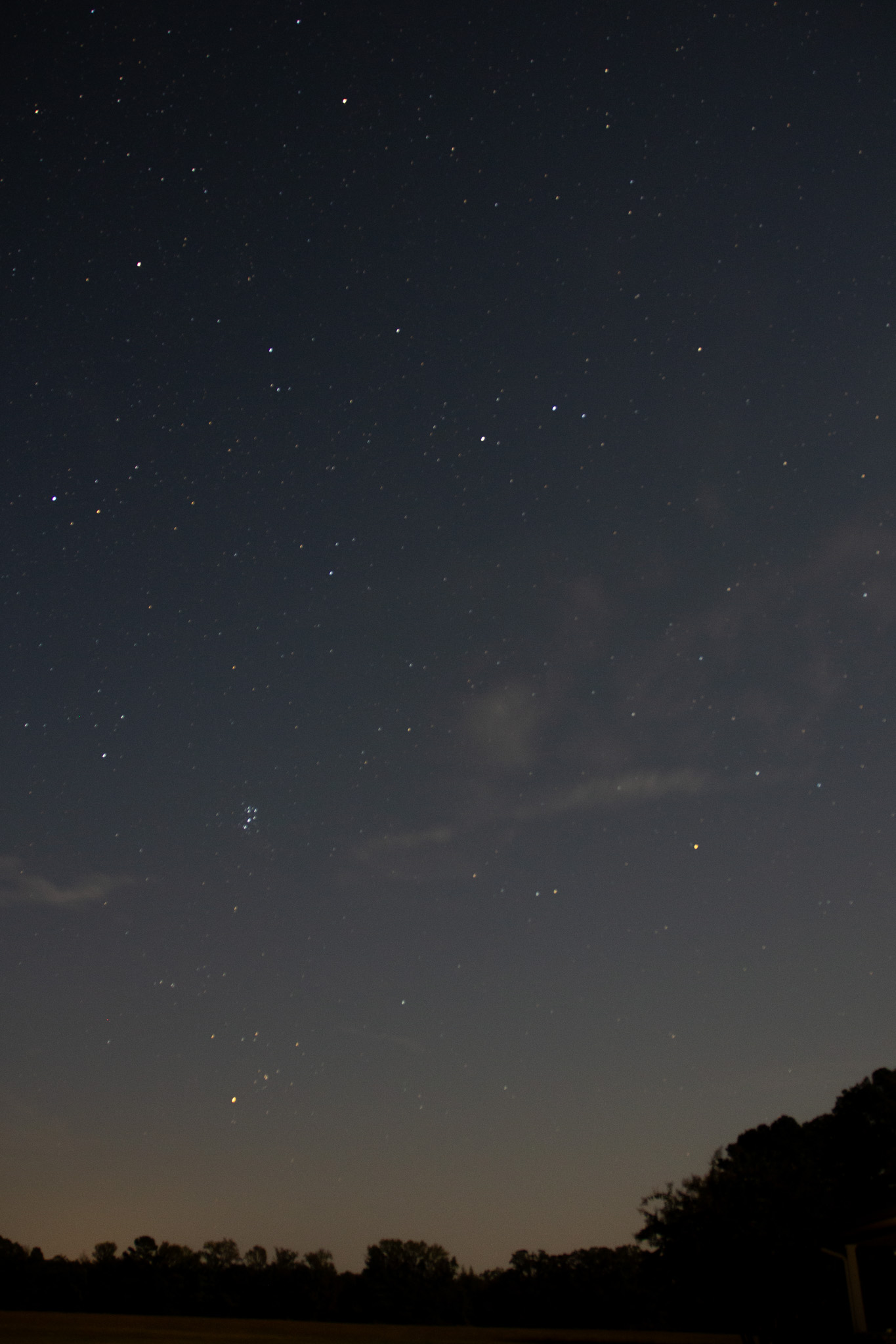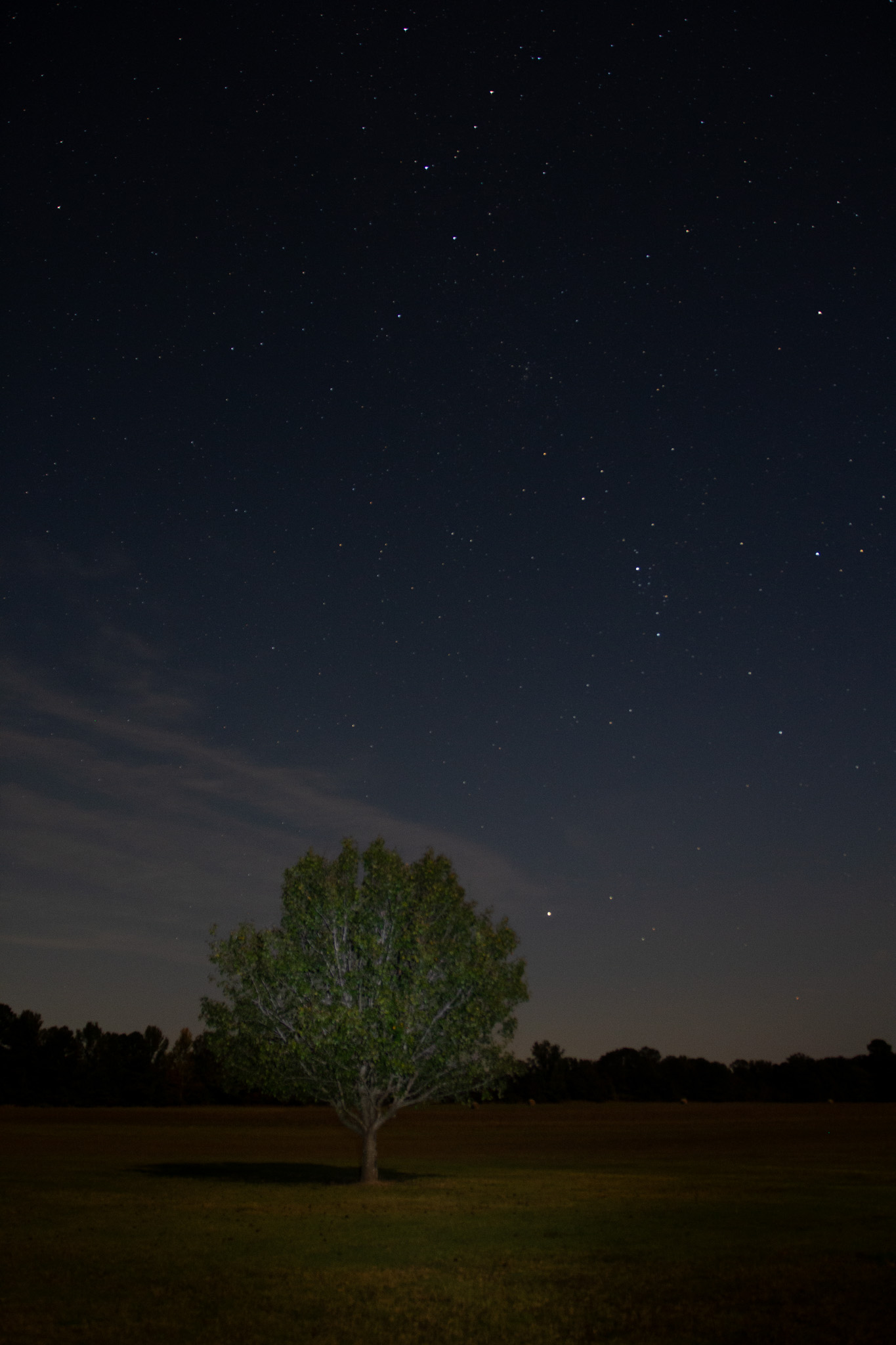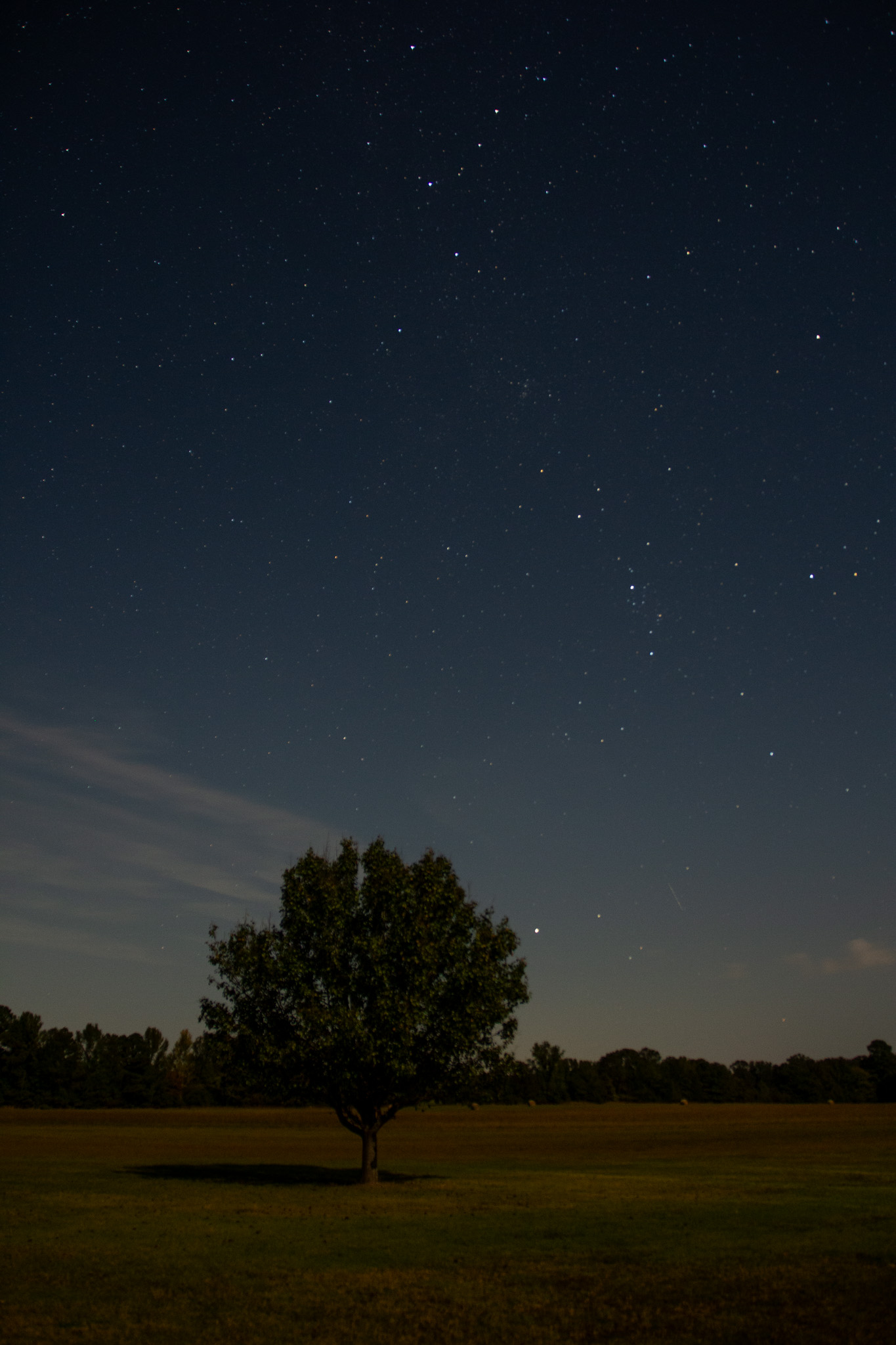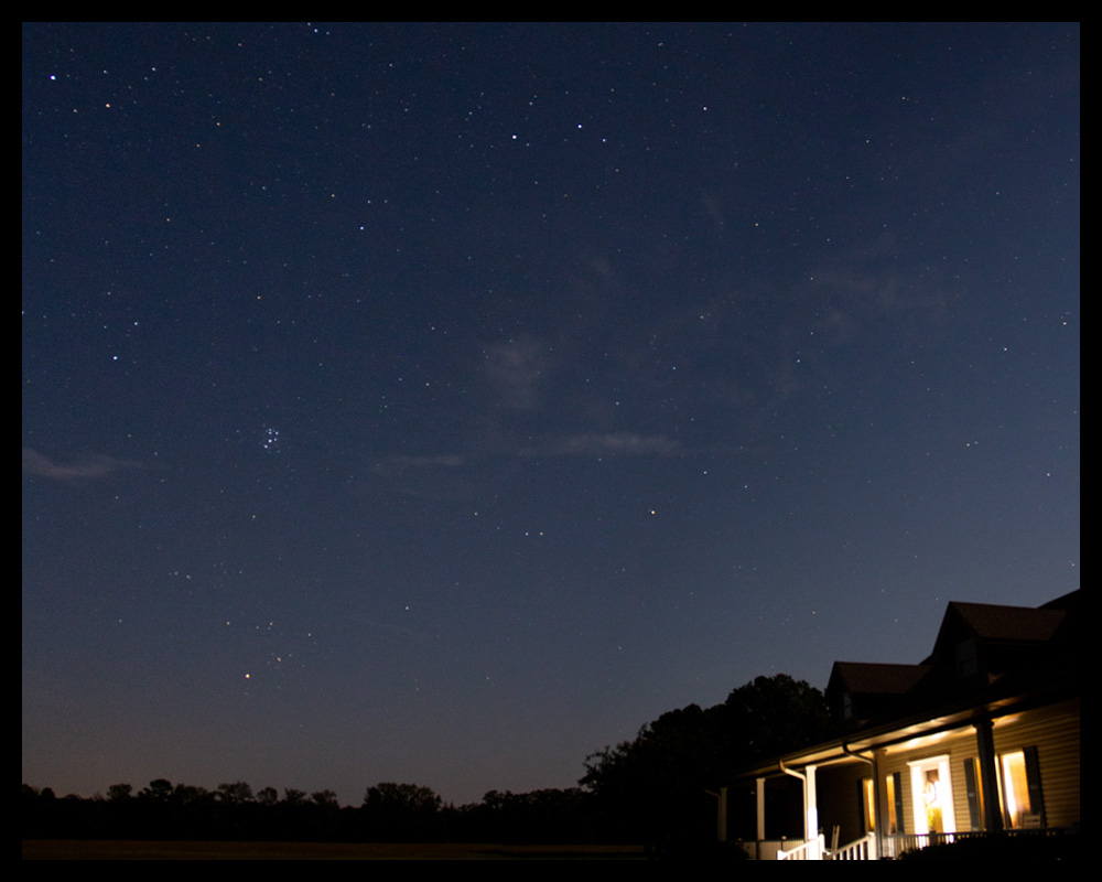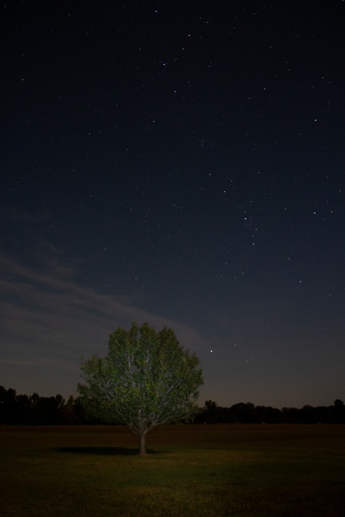 The Saturday night before I left for Chicago (on Monday) I was invited by a friend to do some star gazing with her and one of her friends. It was in a great night sky location (probably best I’ve seen around here) as far as the “light pollution” goes. We were able to watch some constellations, planets, and stars. The moon was full that night so it had a lot of the sky and yard “lit” up. I started with a long exposure across the front yard and it almost looked like early morning!