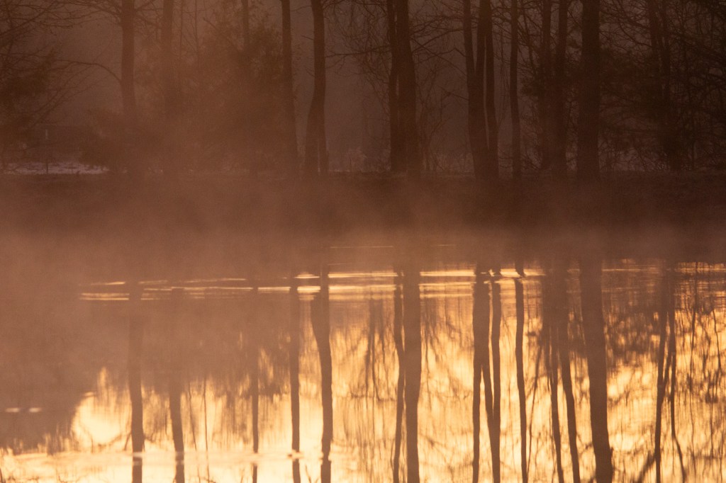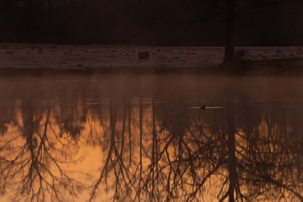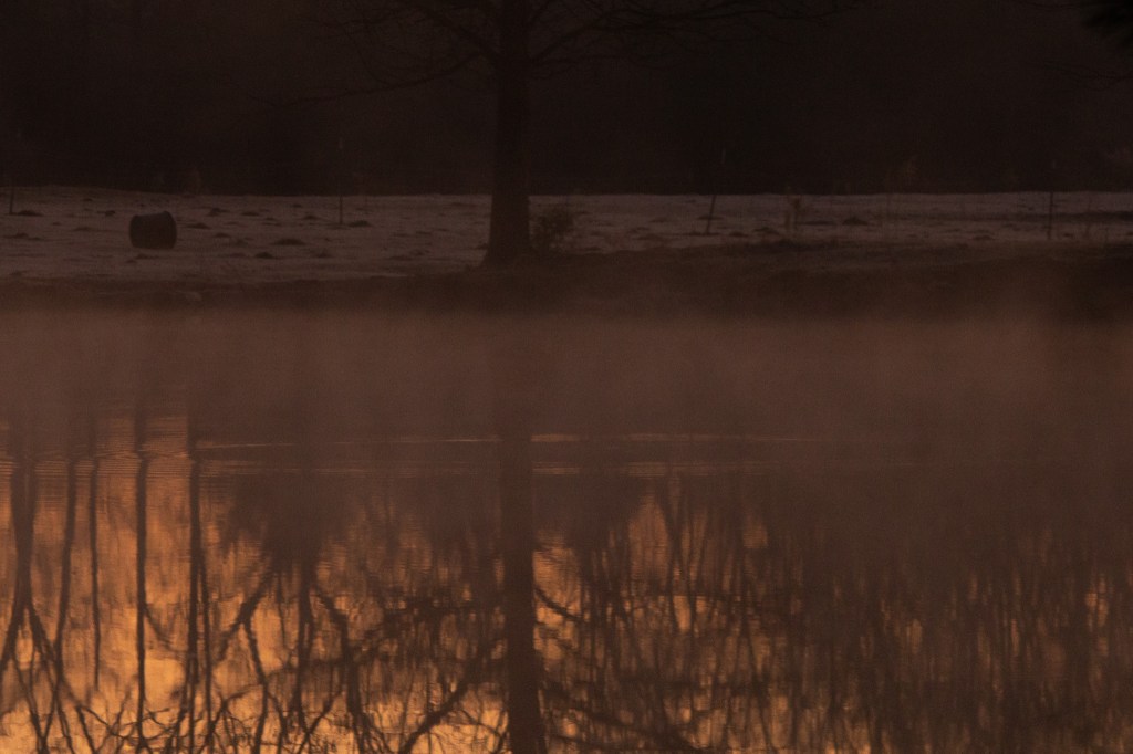 Yesterday’s post was from a drive out to Lake Monticello I took one morning on my way to work. Today’s post is also from a drive to work one morning recently. I was going in early BUT the view of the sun rising over a pond near my house caught my attention. I thought I should try to get a photo of it one morning soon and kept driving. I got a little ways down the road and told myself to turn around and go take a picture.