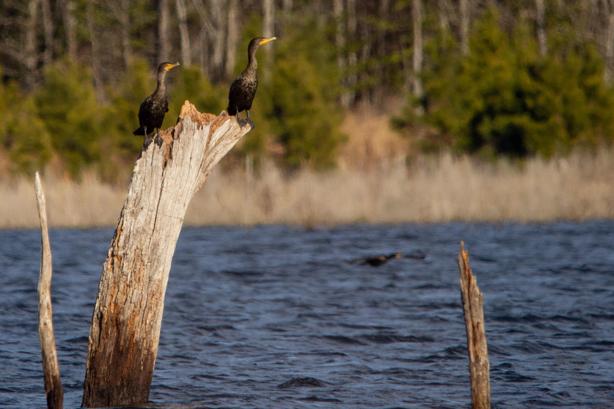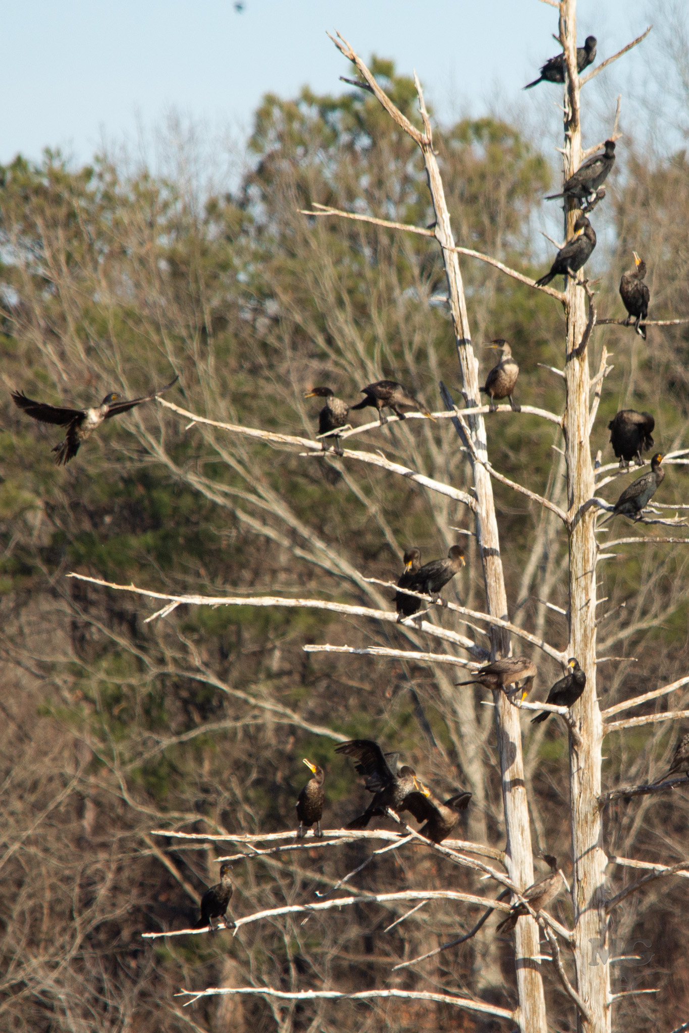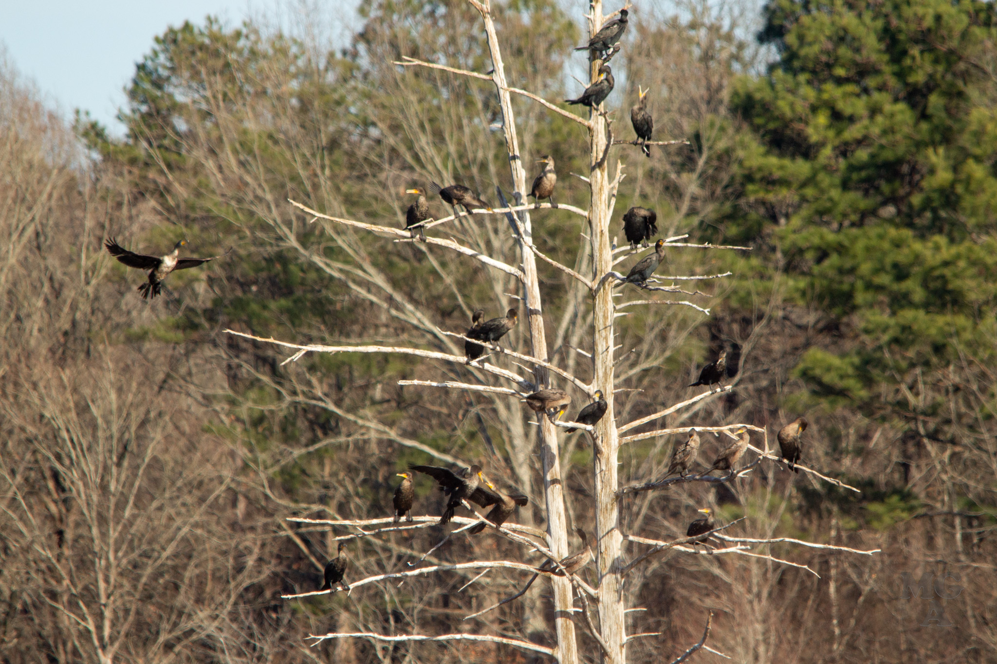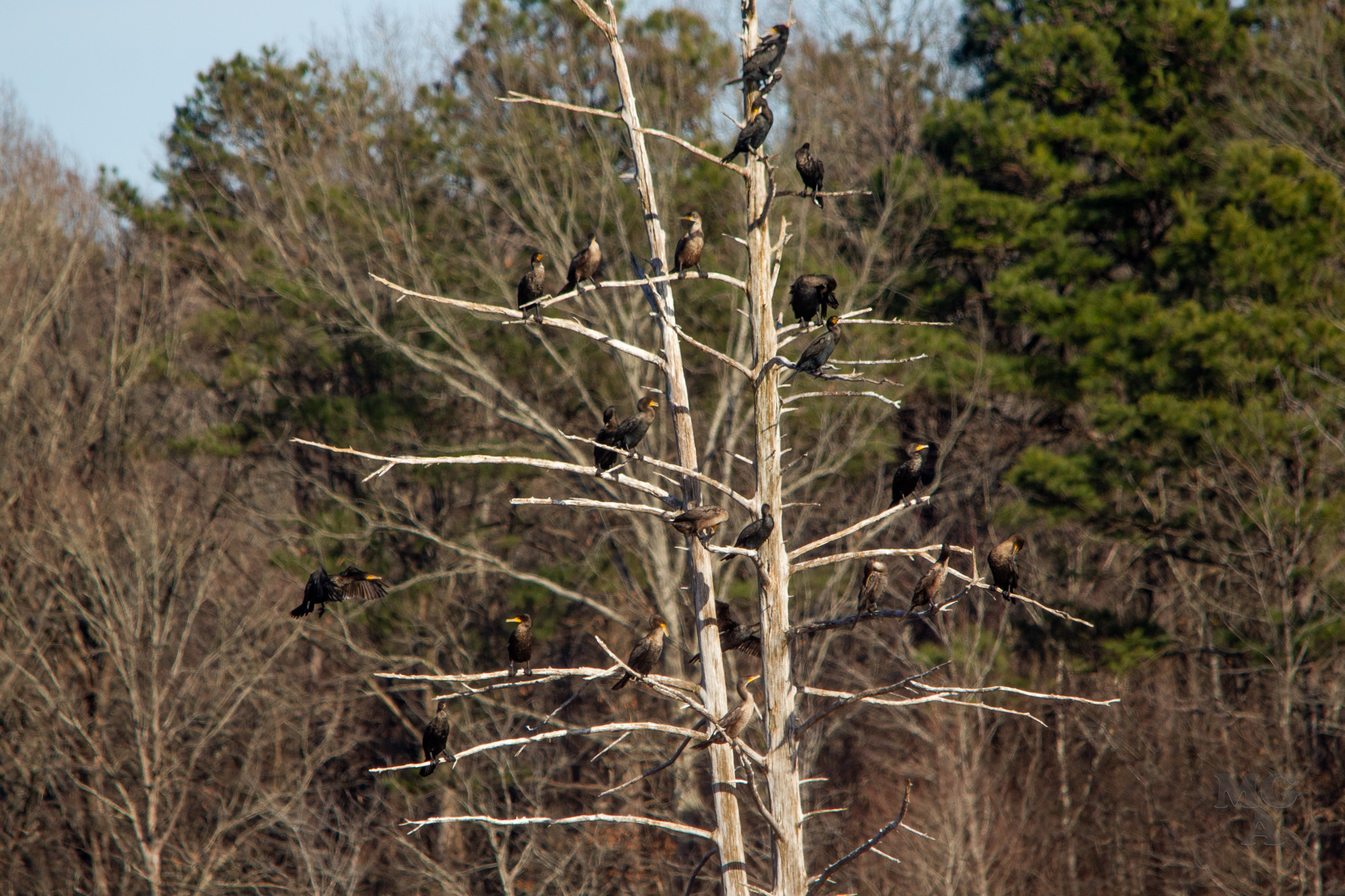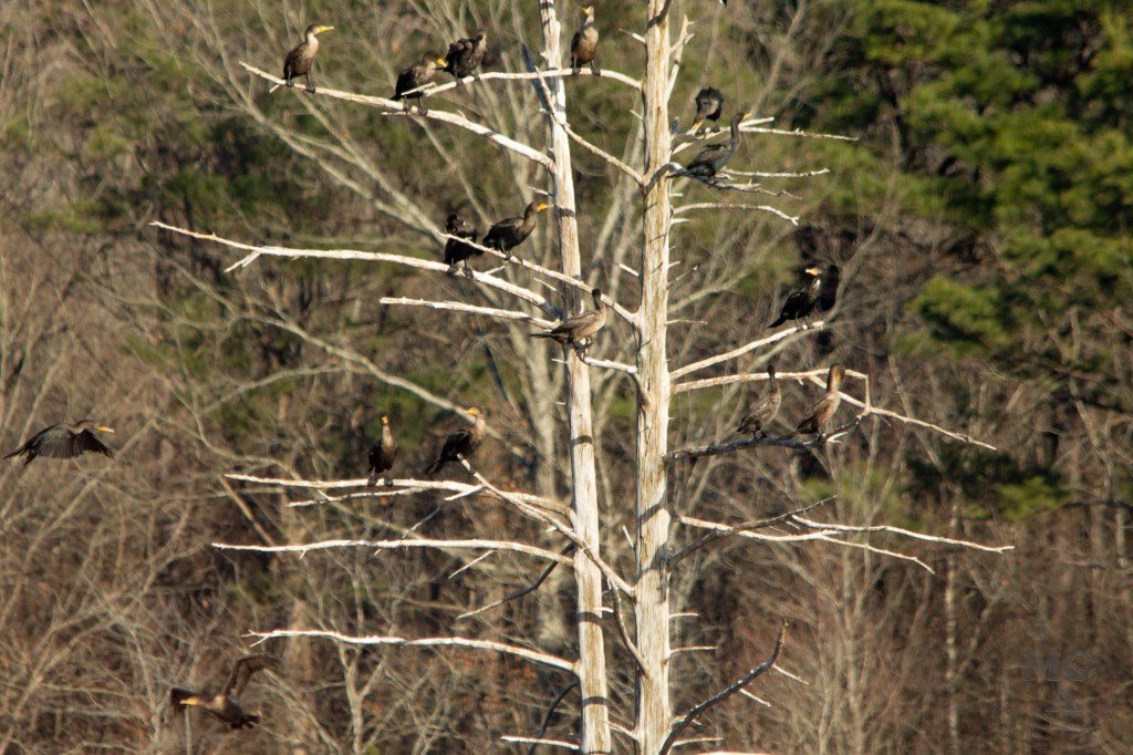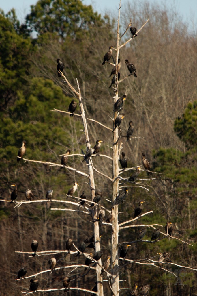 In my favorite picture of the day (also displayed above) the hint of cormorants. I’m not a bird expert but I’ve always called these birds water turkeys (mostly) or Cormorant. But after some reading just now it looks like these are not Water Turkeys but are just Cormorants. I’ll have to check with some my birding friends on that one. From what I’ve read the “Water Turkey” is the Anhinga bird and are different from cormorant.