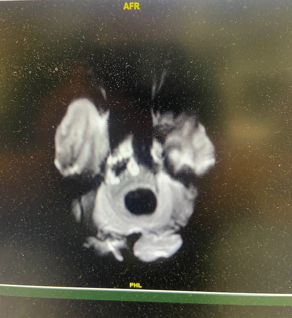 Ok, that picture proves it for those of you wondering…I do have a brain! This is from my six month checkup after surgery and the photo is from the MRI I had along with the checkup. My surgeon told me everything looks great and he’ll see me at my one year checkup/MRI in November. The thing I was looking at in this MRI is the “black hole” in the center. That is my brainstem. That is where this issue started. The brain growths (tumor) was putting pressure on my brainstem and caused it to be mis shaped which caused some neurological issues (worst pain I’ve ever experienced). It is good for me to see it looking more circular for sure.