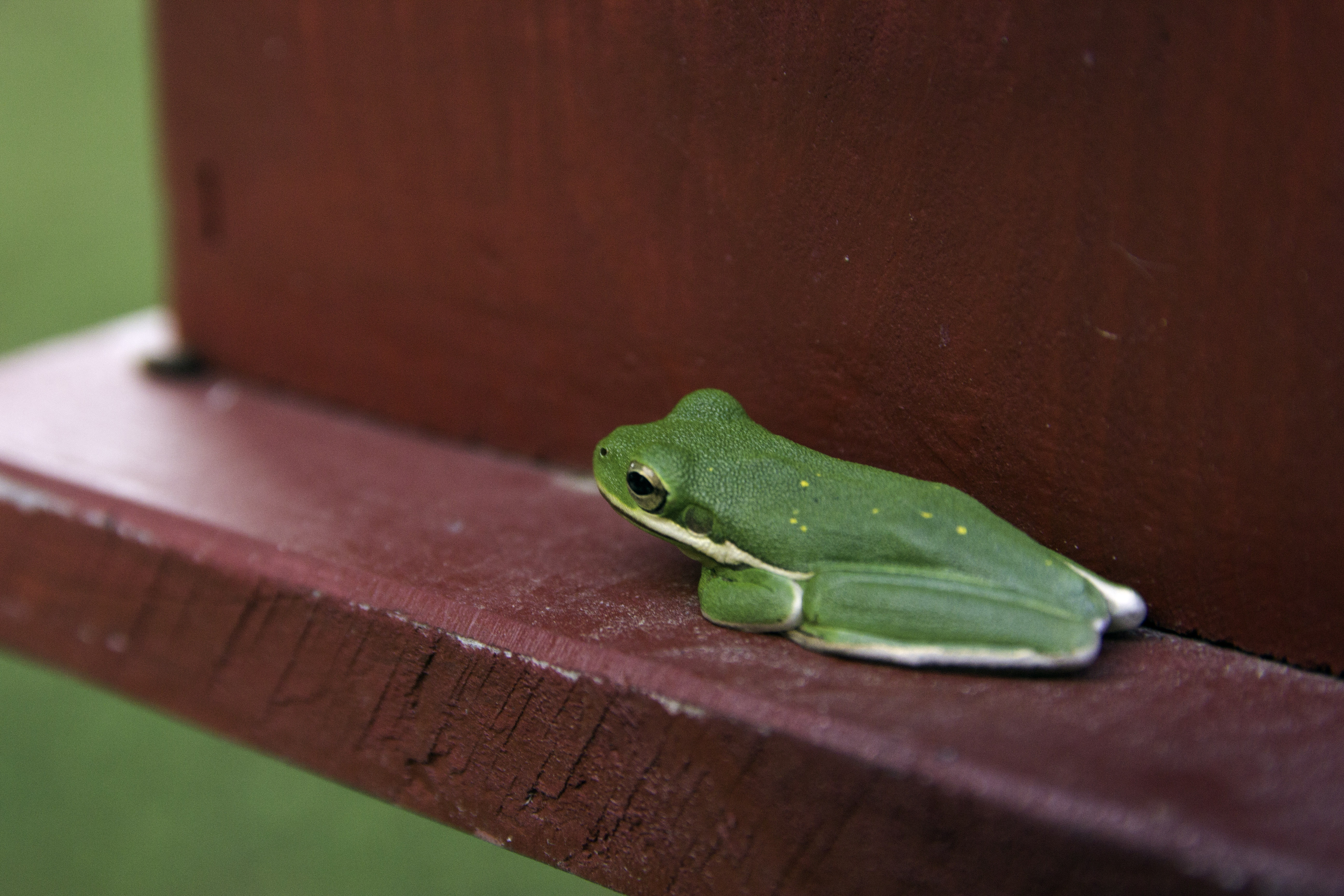 It’s just a picture of a frog on a bird house but I thought it was interesting. As I remember it we had the bird house outside our back door and I walked outside for something and saw it so I went and got my camera to snap a photo. The eyes of the frog always catch “my eye” when I see it. The frog appears to be resting, possibly waiting on its next meal which are both reasons I used it for tomorrow’s post (maybe you’ll se why tomorrow)….