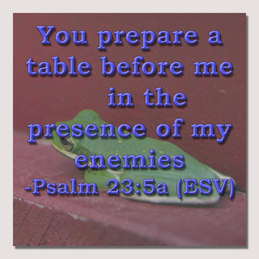 I’m re-reading a book I read a while back right now. It is Don’t Give The Enemy A Seat At Your Table by Louie Giglio. I read chapter 4 this morning and it hit me straight in the teeth. My pastor, Rob Leonard, at Pauline Baptist Church has challenged the church to start memorizing scripture. One of the passages he challenged us to learn is Psalm 23. I thought while I was finally trying to memorize the chapter I’d re-read this book. The book came at just the right time for me. If I remember correctly the other chapters will hit too just as chapter 4 did this morning so maybe I’ll write more on it in the future…