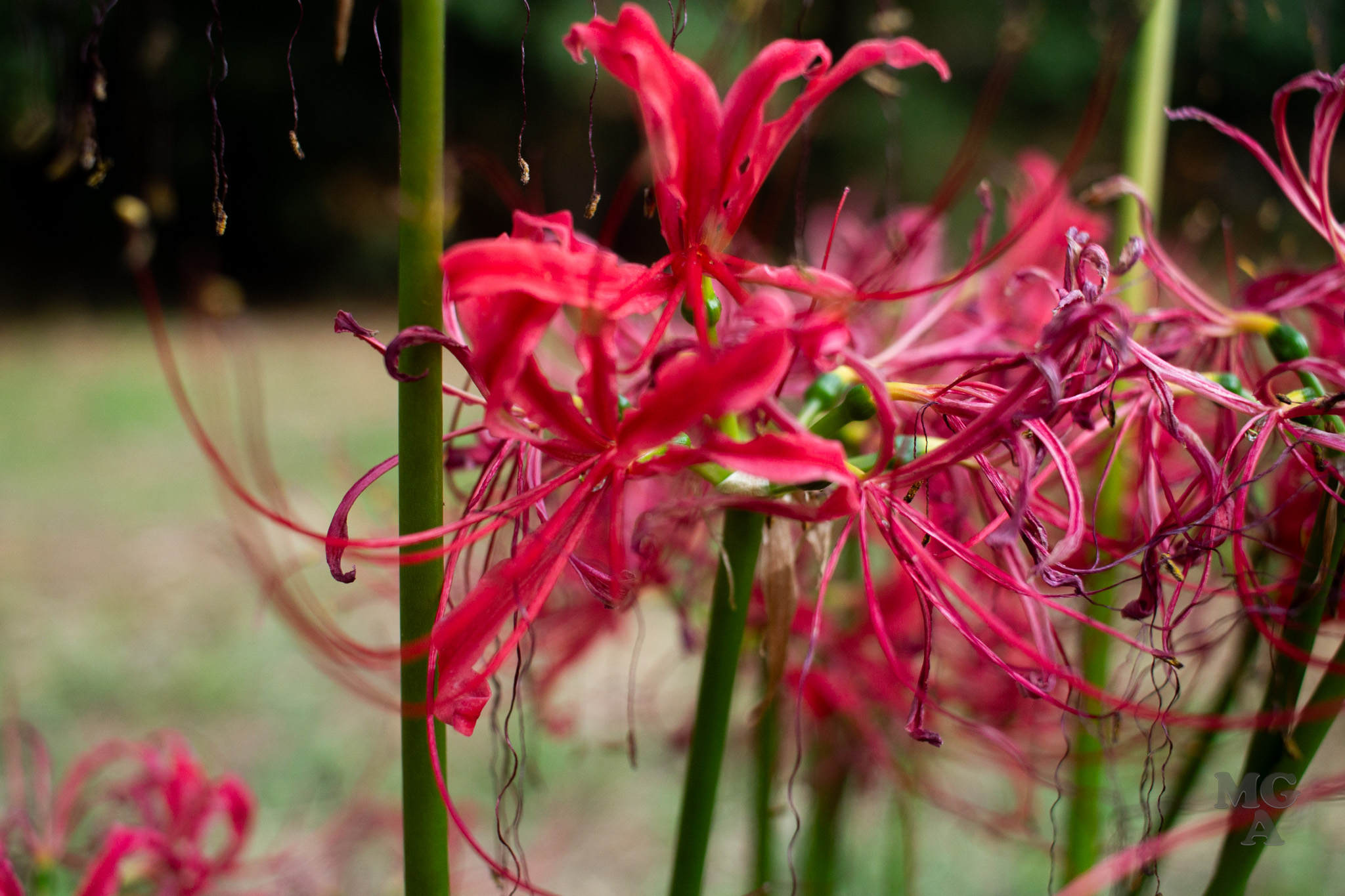I drove past some more Spider Lilies the other day. I said I’d stop by for some pictures when “I had the time…” So, Friday morning I finally “had the time” so I stopped on my way to work. The flowers had faded some but there were a few fresh blooms coming out…