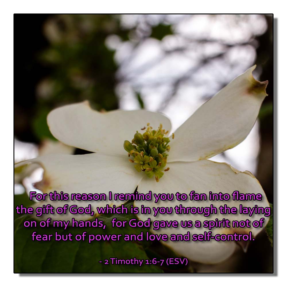 Fan into flame, the gift of God, which is in you if you’ve accepted Jesus as Savior!