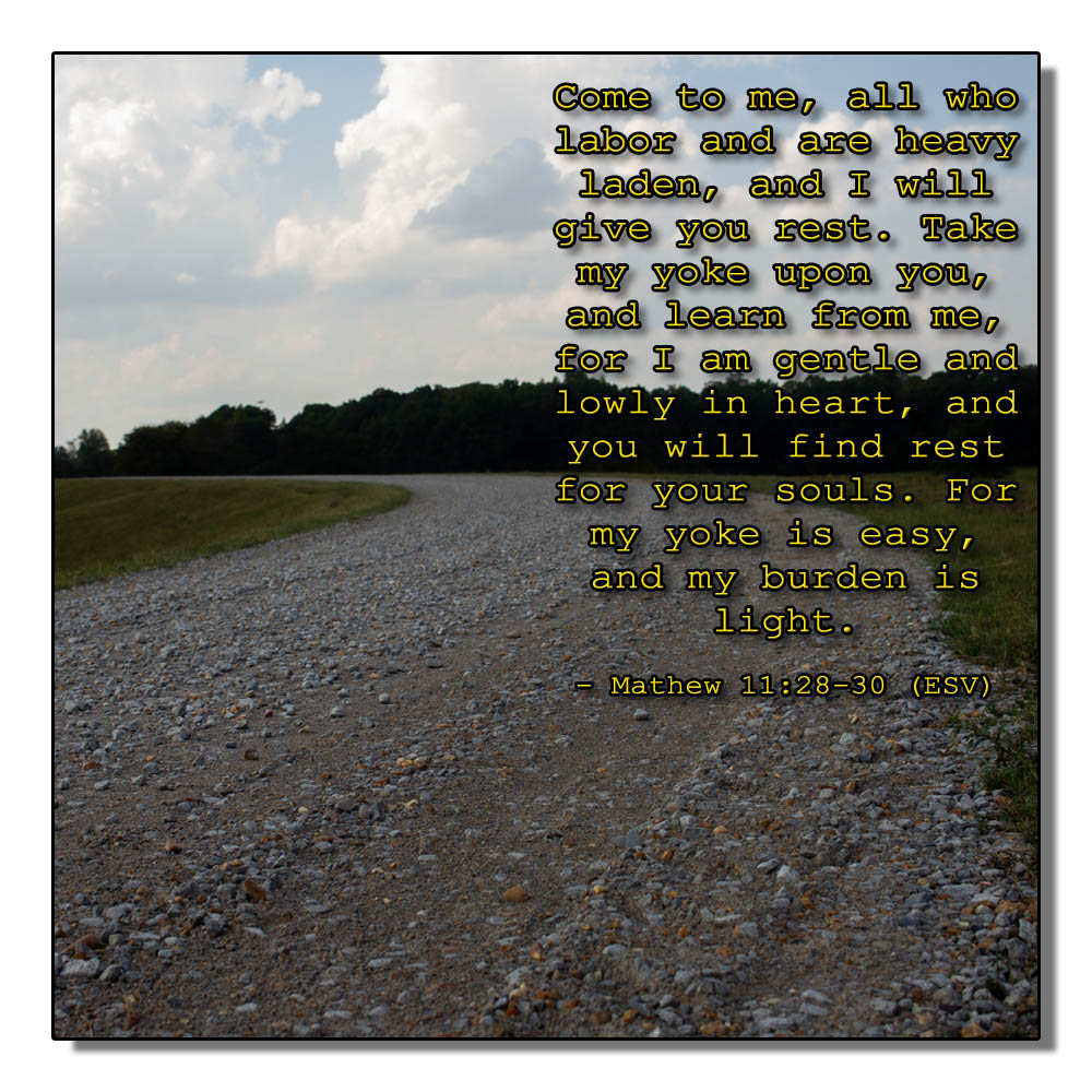 As most days when I leave the house early to go exercise for a little while a song will come on the radio and get my attention! Usually I’ll forget to jot it down but I remembered to do so when I got to the gym. Then today I did a quick Google to get some insight on bible verses to go with this song. In the search I was pointed to some verses in Matthew 11. I thought, “duh, Michael!”.