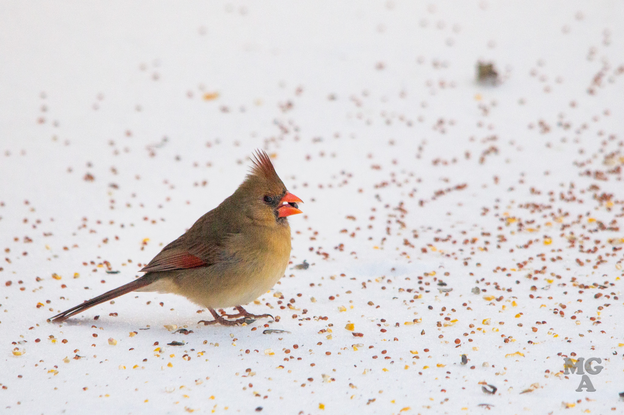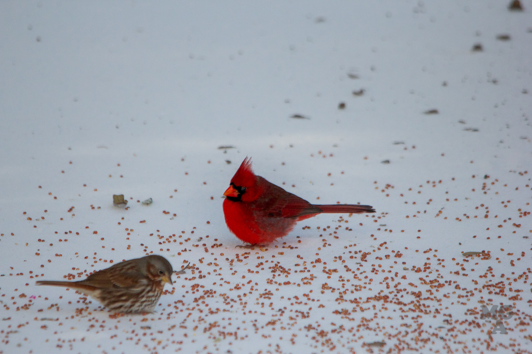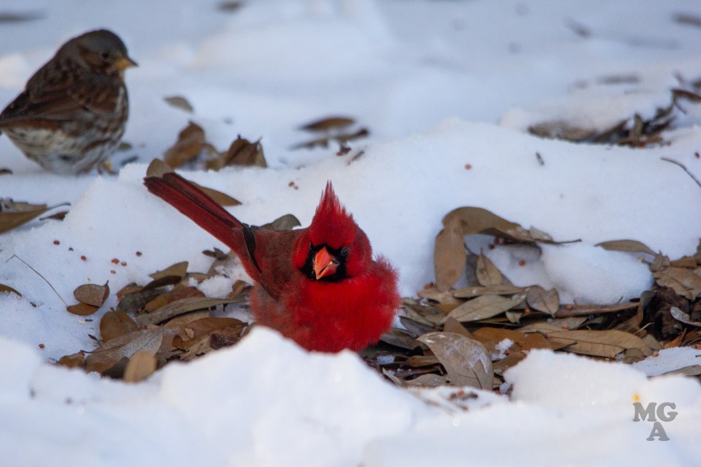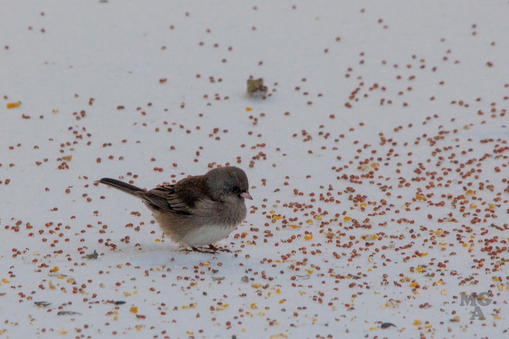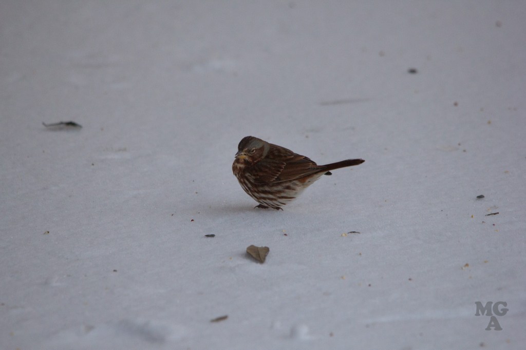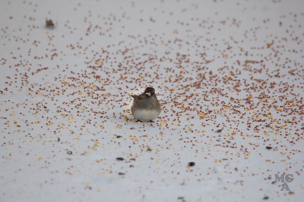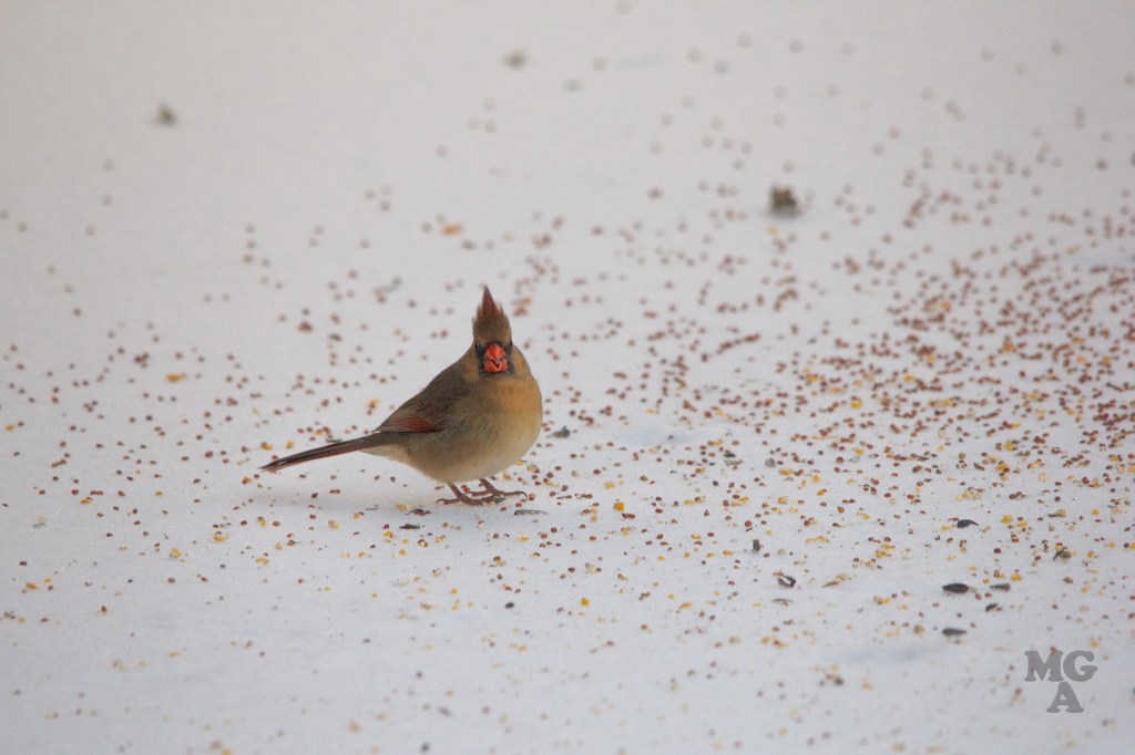 I titled this post as snow day but it was really an ice day! My son helped me put out a pile of birdseed next to our back porch and I snuck out there to take a few pictures after the birds found the seed.